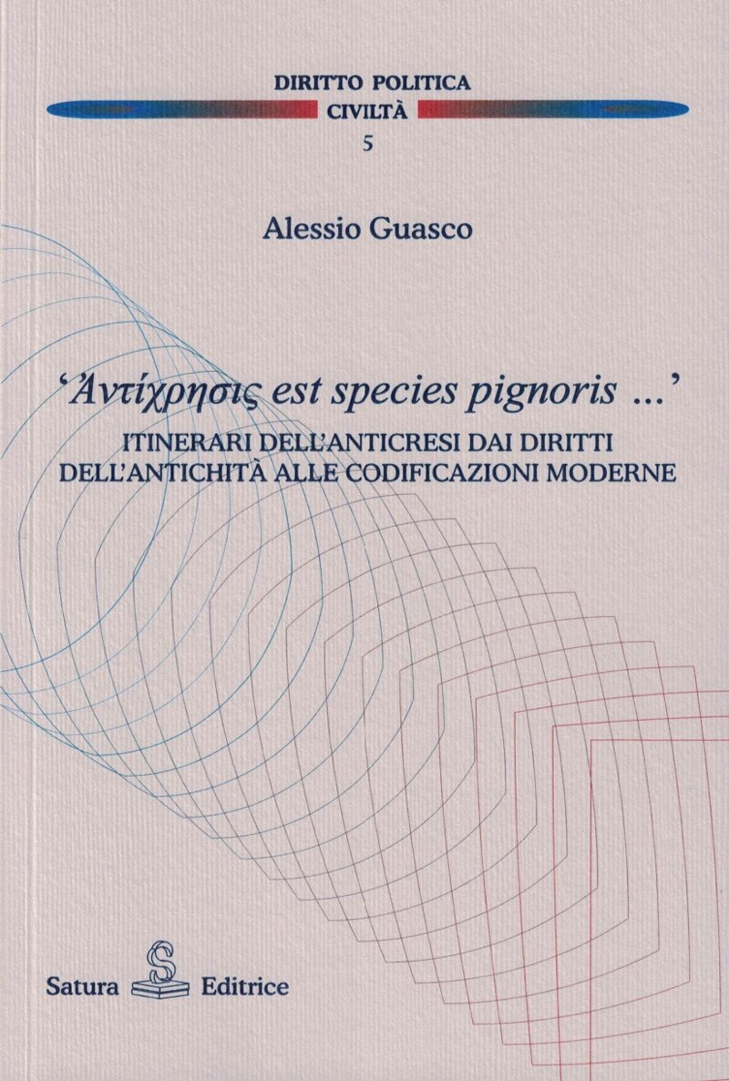 Note introduttive. – CAPITOLO PRIMO - L'ANTICRESI NEI DIRITTI DELL'ANTICO ORIENTE MEDITERRANEO: 1. Le prime tracce dell’anticresi nei diritti babilonesi ed assiri. – 2. La garanzia anticretica nel mondo greco. – 3. L’anticresi nell’Egitto tolemaico. — CAPITOLO SECONDO - L’ANTICRESI NEL CONTESTO PROVINCIALE TRA IL I E IL III SECOLO: 1. L’anticresi nelle testimonianze per l’Egitto romano. – 2. P. Euphr. 13: l’anticresi nel Medio Eufrate. — CAPITOLO TERZO - L’ANTICRESI NEL DIRITTO ROMANO TRA RIFLESSIONI GIURISPRUDENZIALI E INTERVENTI NORMATIVI DURANTE IL PRINCIPATO: 1. L’anticresi nel liber singularis ad formulam hypothecariam di Marciano. – 2. L’anticresi compensativa nella riflessione di Paolo. – 3. Ulpiano e l’anticresi satisfattiva. – 4. Interventi normativi dell’età dei Severi — CAPITOLO QUARTO - L'ANTICRESI IN ETA' TARDOANTICA: 1. L’anticresi nelle costituzioni imperiali sul finire del III secolo. – 2. Interventi normativi in limitazione dell’anticresi nelle Novelle di Giustiniano. – 3. L’anticresi nel diritto ebraico. — CAPITOLO QUINTO - LA RECEZIONE DELL’ANTICRESI DAL DIRITTO ROMANO: 1. L’anticresi nel diritto bizantino. – 2. La rinascita dell’anticresi nella lettura dei Glossatori. – 3. L’anticresi tra ‘pegno vivo’ e ‘pegno morto’. – 4. Verso le codificazioni. – 5. J. Domat e R.J. Pothier: la ‘costruzione’ del contratto di anticresi — CAPITOLO SESTO - L'ANTICRESI NELLE CODIFICAZIONI MODERNE: 1. Recezione dell’anticresi nelle codificazioni moderne. Il caso dell’ALR. prussiano. – 2. L’anticresi nella codificazione napoleonica. – 3. L’anticresi nei codici preunitari. – 4. L’anticresi nei lavori preparatori al codice civile italiano del 1865. – 5. La disciplina dell’anticresi nel codice civile italiano del 1865. – 6. Il Nutzungspfand nel BGB. – 7. L’anticresi nel codice civile italiano del 1942. – 8. L’anticresi negli altri ordinamenti europei ed extraeuropei. – Riflessioni conclusive. – Indice degli autori. – Indice delle fonti.